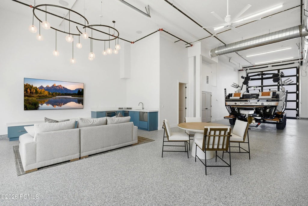 Unit 2 at Mountain View Commons showcases the highly sought-after Outlaw floor plan, offering a rare opportunity to blend commercial and residential living within one property. Mountain View Commons is a premier mixed-use development allowing 40+ permitted residential and commercial uses, creating flexibility for owner-users, entrepreneurs, and investors alike.This three-level layout offers approximately 5,400 square feet total, with roughly 1,800 square feet per level, designed to adapt to a wide range of lifestyle and business needs.The main (lower) level features a 30' x 60' warehouse-style flex space with 16+ foot clear heights and two oversized 14' glass garage doors, providing pull-through access. This level is ideal for commercial, storage, or hobby use, and also serves as a versatile environment for entertainment, gatherings, private retreats, or creative studio space. With its scale, access, and separation from the residential levels above, it offers an ideal setup for hosting out-of-town guests or accommodating visiting employees. Elevator and stair access connect all three levels.The second level is designed for residential living and features a beautifully appointed kitchen with a premium Fisher & Paykel appliance package, custom cabinetry, and high-end finishes that reflect thoughtful craftsmanship. This level also includes an office, a large laundry room, and a spacious family room framed by views of Heber Valley and Mount Timpanogos--perfect for everyday living and entertaining.The third level completes the experience with 360-degree views of Heber Valley and offers three full-size luxury bedrooms, a well-appointed bathroom, and oversized custom closets for each bedroom, creating a private retreat.Whether you're seeking a live/work environment, on-site business headquarters, or a mixed-use investment, The Outlaw at Mountain View Commons delivers exceptional design, flexibility, and mountain views! *Model Open T-F 1-5, Sat 11-3*